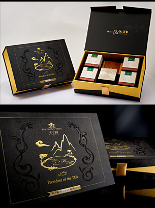 龍在中國人的社會裡,代表著帝王與尊貴,本公司推出尊榮禮盒,以文化創新的概念,用雷射雕刻出龍形在禮盒上,搭配一只如同玉璽般的藏茗鑵與本公司福壽山達觀亭總統茶葉,三者合而為一,實屬極品,更顯出送禮者與收受者之珍貴尊榮的地位