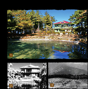 1.天池與達觀亭(民國99年) 2.天池與達觀亭(民國60年) 3.福壽山農場桃園(民國57年) 4.福壽山農場介壽松(民國56年) 5.兩蔣於福壽山農場鴛鴦亭(民國53年)) |